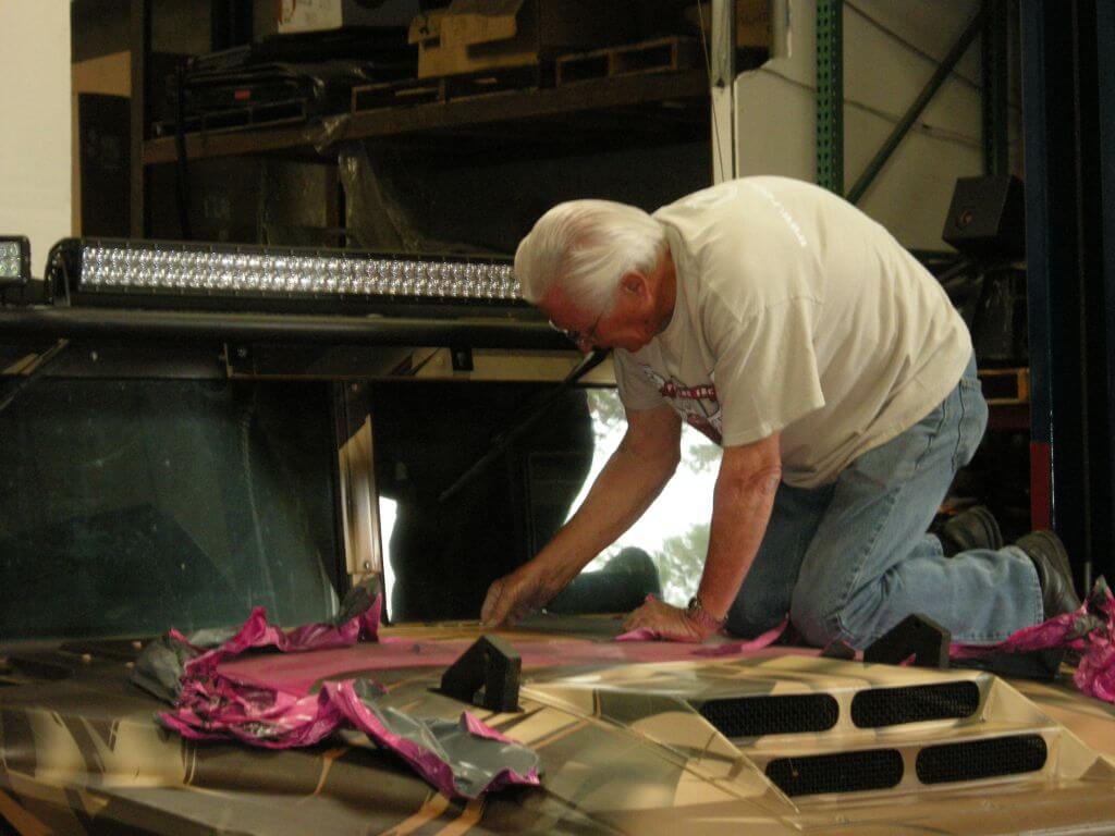 Dan couldn’t wait to remove the bright pink wrap the Dudeson’s put on the Predator Hummer. Although it worked well for them, it gave Dan a few sleepless nights. We have to make sure he doesn’t hurt himself with all the enthusiasm.